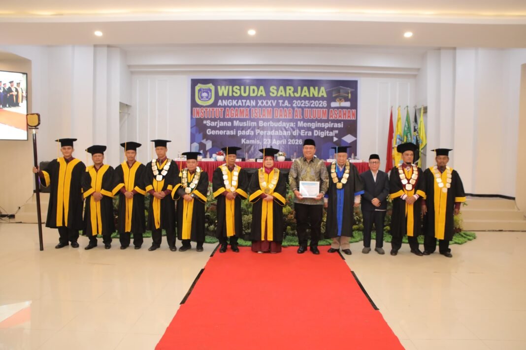 Asahan, Kamis (23/04/2026) — Bupati Asahan menghadiri kegiatan Wisuda Sarjana Angkatan XXXV Institut Agama Islam Daar Al-Ulum (IAIDU) Asahan yang digelar di Aula Hotel Marina Kisaran, Kamis pagi.