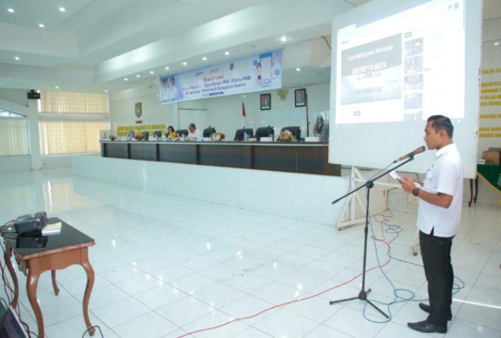Asahan, investigasi.news-Pemerintah Kabupaten Asahan melalui Badan Kepegawaian dan Pengembangan Sumber Daya Manusia (BkPSDM) Kabupaten Asahan menggelar sosialisasi Sistem Registrasi Tugas Belajar (SiBela) PNS di Aula Melati Kantor Bupati Asahan, Rabu (23/08/2023). Sosialisasi ini dibuka langsung oleh Wakil Bupati Asahan Taufik Zainal Abidin Siregar, S. Sos, M. Si dan dihadiri oleh Sekretaris BKPSDM Kabupaten Asahan dan ASN di Lingkungan Pemerintah Kabupaten (Pemkab) Asahan.