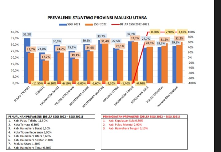Menurut hasil Hasil Survei Status Gizi Indonesia (SSGI) Tahun 2021-2022, prevalensi balita stunting di Maluku Utara tahun 2021 sebesar 27,5 % dan tahun 2022 sebesar 26,1%.