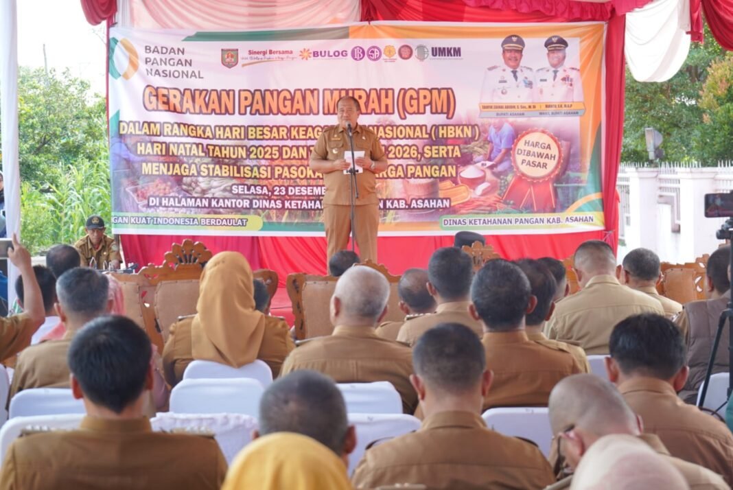 Kisaran, investigasi.news — (23/12/2025) Menjelang akhir tahun, tekanan terhadap harga bahan pokok cenderung meningkat seiring naiknya konsumsi rumah tangga. Untuk merespons kondisi tersebut, Pemerintah Kabupaten Asahan melaksanakan Gerakan Pangan Murah (GPM) di halaman Kantor Dinas Ketahanan Pangan Kabupaten Asahan sebagai upaya menjaga keterjangkauan pangan bagi masyarakat menjelang Natal 2025 dan Tahun Baru 2026.