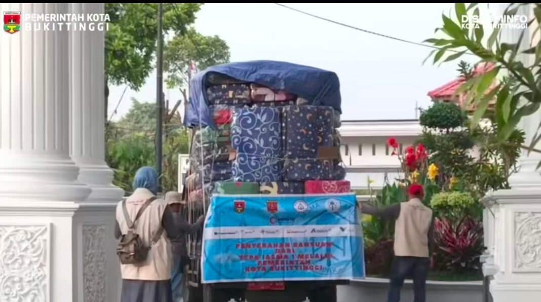Wali Kota Bukittinggi, Ramlan Nurmatias, menyampaikan, bantuan yang diserahkan berupa 200 unit kasur, selimut, serta sekitar 200 unit rice cooker. Ia menjelaskan, pengadaan rice cooker tersebut bersumber dari hasil kegiatan galang dana Pacu Kuda Bukittinggi dengan total dana sekitar Rp43 juta, ditambah dukungan dari Baznas sebesar Rp24 juta.