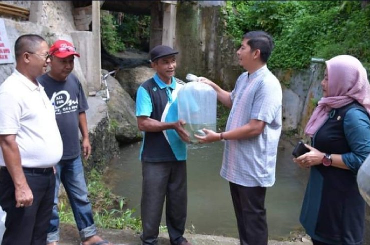 Wali Kota Sawahlunto Deri Asta bersama jajaran Dinas Ketahanan Pangan Pertanian dan Perikanan (DKP3) mengantarkan langsung bantuan bibit ikan rayo (ikan mas) sebanyak seribu ekor tersebut pada Jum’at 24 Maret 2023.