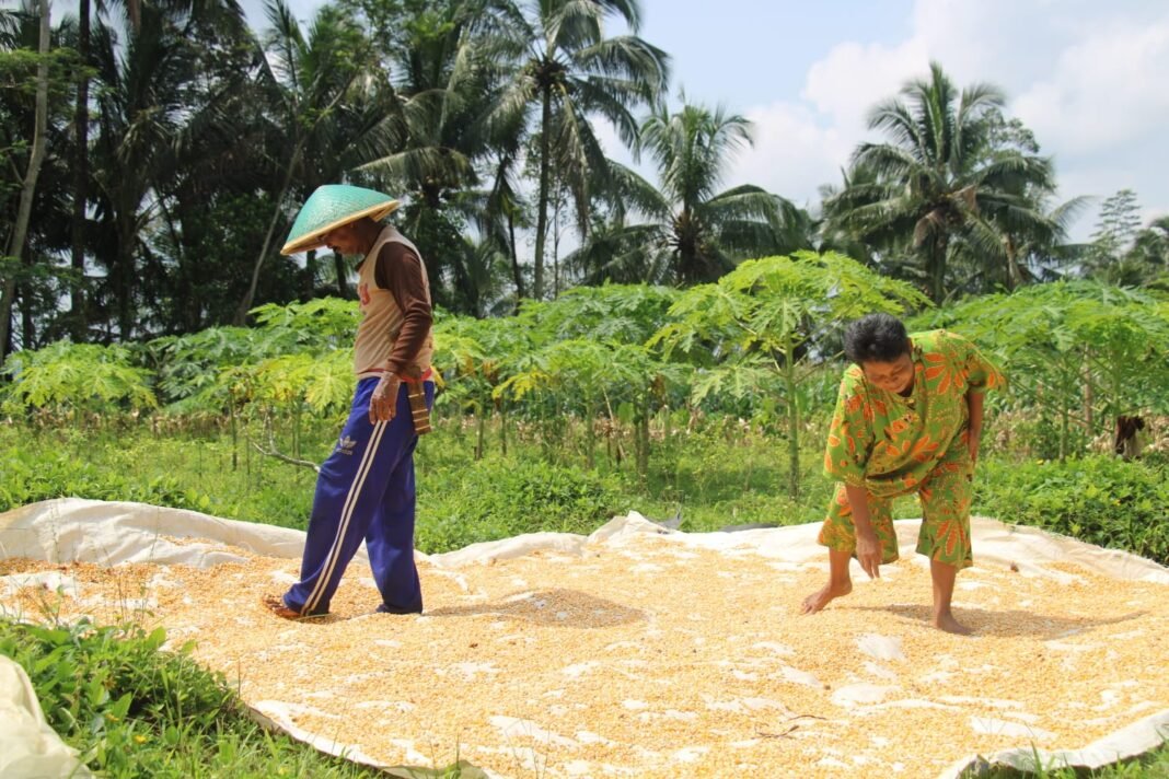 PURBALINGGA — Di bawah terik matahari siang, Sulaiman bersama sang istri masih sibuk menjemur jagung hasil panen di kebun Desa Krangean, Kecamatan Kertanegara, Kabupaten Purbalingga. Butiran jagung disebar merata di atas terpal, lalu sesekali dibalik agar cepat kering. Meski raut lelah tampak jelas, harapan justru terpancar dari wajah keduanya di balik aktivitas sederhana tersebut.