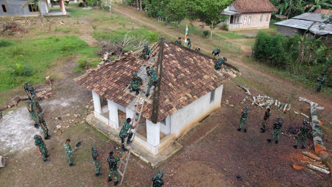 OKI — Wujud nyata kepedulian terhadap sarana ibadah masyarakat, Satuan Tugas (Satgas) TMMD Kodim 0402/OKI melaksanakan kegiatan pembongkaran bangunan mushola yang akan direnovasi agar menjadi lebih layak dan nyaman digunakan oleh warga.