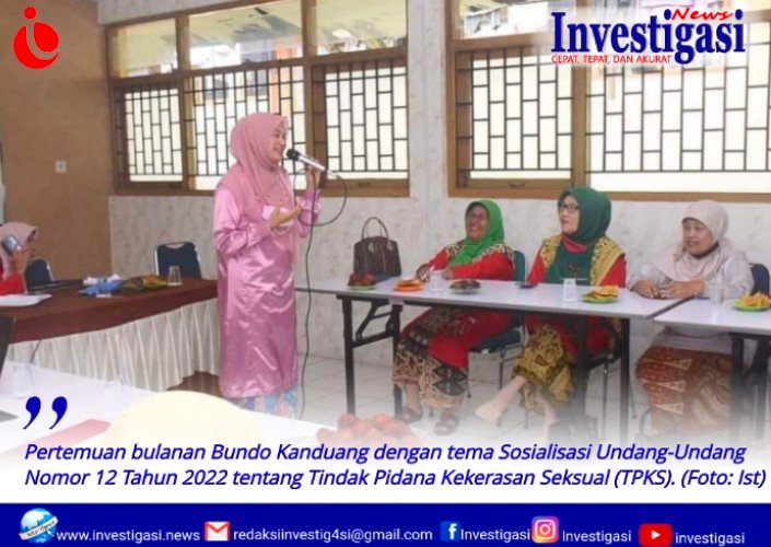 Hal itu terungkap pada pertemuan bulanan Bundo Kanduang dengan tema Sosialisasi Undang-Undang Nomor 12 Tahun 2022 tentang Tindak Pidana Kekerasan Seksual (TPKS), Jumat (23/9) di Aula Dinas Kesehatan (Dinkes). Sosialisasi disampaikan Kabid Pemberdayaan Perempuan dan Perlindungan Anak (PPPA), Tismaria, S.E, M.Si.