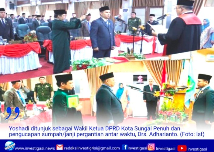 Pengucapan sumpah/janji diantaranya, Yoshadi yang merupakan anggota DPRD dari Fraksi Amanat Nasional ditunjuk sebagai Wakil DPRD Kota Sungai Penuh dan pengucapan sumpah/janji pergantian antar waktu, Drs. Adharianto mengantikan Satmar Lendan Dpt yang sebelumnya menjabat wakil ketua DPRD Kota Sungai Penuh.