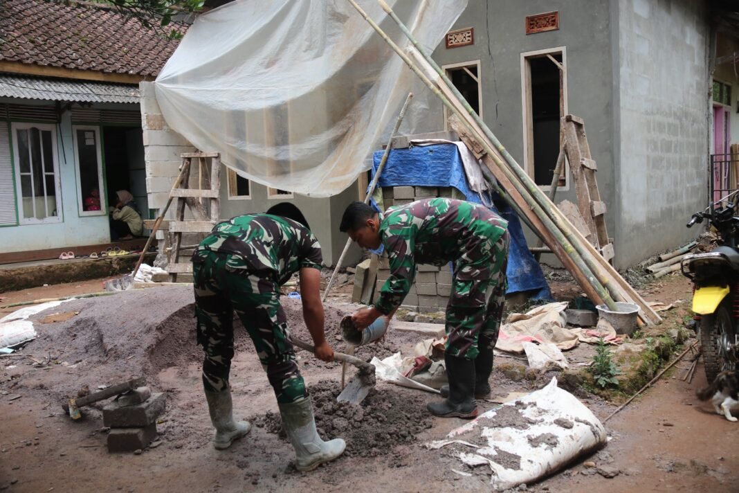 CIPELAH, KABUPATEN BANDUNG – Pada hari Rabu (25/2/2026) pukul 08.00 WIB hingga selesai, anggota Satgas TMMD bersama masyarakat Desa Cipelah melaksanakan kegiatan pembangunan Rumah Tidak Layak Huni (RTLH) milik Ibu Lis yang bertempat di Kampung Babakan Garut RT 03 RW 03. Kegiatan ini merupakan bagian dari Program TMMD Reguler ke-127 Tahun 2026 yang diselenggarakan oleh Kodim 0624/Kabupaten Bandung.