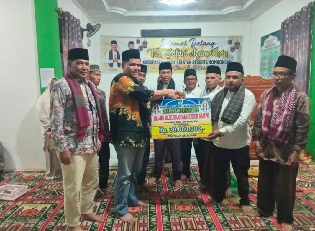 Padang Aro – Beribadah di masjid yang juga menyimpan sejarah perjuangan penyebaran islam di Solok Selatan membawa kenangan tersendiri. Setidaknya hal ini yang disampaikan Kepala Kejaksaan Negeri Solok Selatan Dahnir saat memimpin Safari Ramadan di Masjid Baiturrahman Syekh Sampu Jorong Sampu, Nagari Lubuk Gadang Utara Kecamatan Sangir.