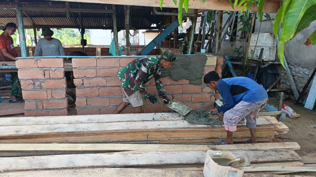 Kendari, investigasi.news — Personel Satgas TNI Manunggal Membangun Desa (TMMD) ke-127 Kodim 1417/Kendari terus memacu pengerjaan sasaran fisik program rehabilitasi Rumah Tidak Layak Huni (RTLH). Pada Rabu (25/2).