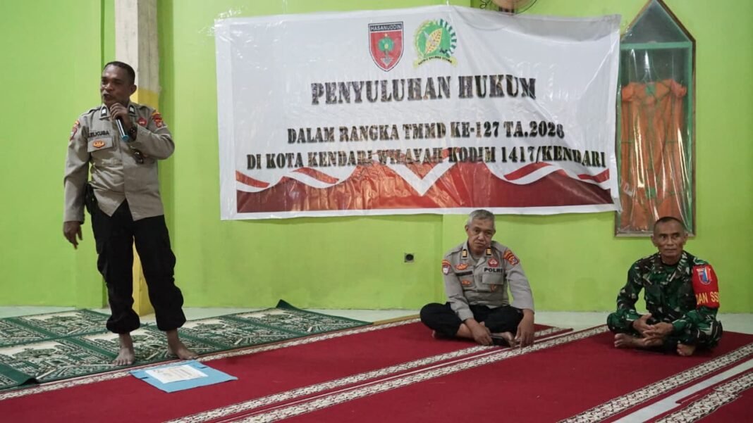 Penyuluhan tersebut dibawakan langsung oleh AKP H. Muhmaddong (Kanit Bhabinkamtibmas Polresta Kendari) dan Iptu Abdurrahman Kelkusa (PS. Kasubnit Bhabinkamtibmas Polresta Kendari) serta di dampingi Kapten Inf Tasliem (Dan SSK TMMD 127).
