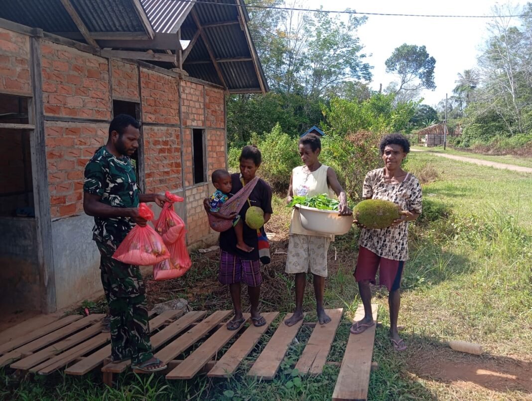 Mappi, investigasi.news – Semangat gotong royong dan kebersamaan mewarnai pelaksanaan TMMD (TNI Manunggal Membangun Desa) ke-127 Kodim 1704/Mappi di Kampung Yibin, Distrik Venaha, Kabupaten Mappi. Bukan hanya kaum laki-laki dewasa yang bahu membahu membantu pekerjaan fisik, tetapi juga kaum mama-mama kampung yang dengan tulus memberikan sumbangsih berupa sayuran dan rica/cabe kepada personel TMMD 127 Kodim 1704/Mappi.