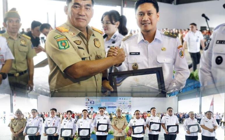 Dalam kegiatan tersebut, Wakil Wali Kota Kotamobagu Rendy V. Mangkat, S.H., M.H., menerima penghargaan dari Gubernur Sulawesi Utara atas prestasi dalam membina Program Keselamatan dan Kesehatan Kerja (K3). Penghargaan ini menjadi bentuk apresiasi atas komitmen dan konsistensi Pemerintah Kota Kotamobagu dalam mendorong penerapan standar K3 di berbagai sektor.