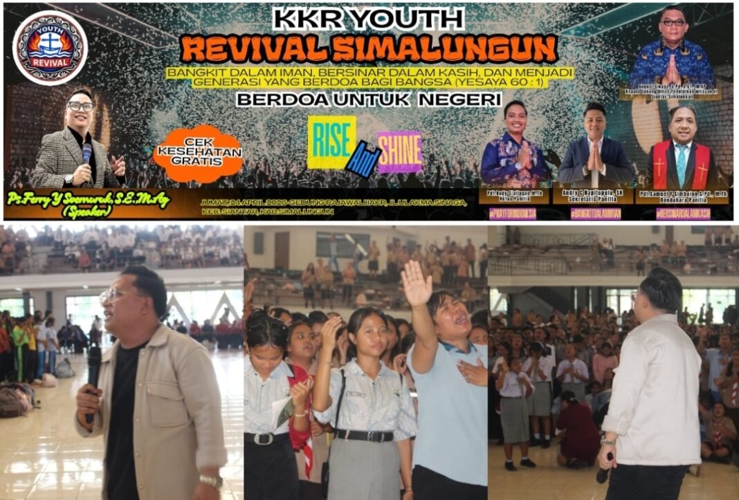 Simalungun – Mengusung semangat kebangkitan rohani bagi generasi muda, komunitas Youth Revival menggelar Kebaktian Kebangunan Rohani (KKR) dengan tema : “Rise & Shine: Berdoa Untuk Negeri.” Acara berlangsung pada hari Jumat, 24 April 2026, bertempat di Gedung Rajawali IAKR, Jalan Ulakma Sinaga, Kecamatan Siantar, Kabupaten Simalungun.