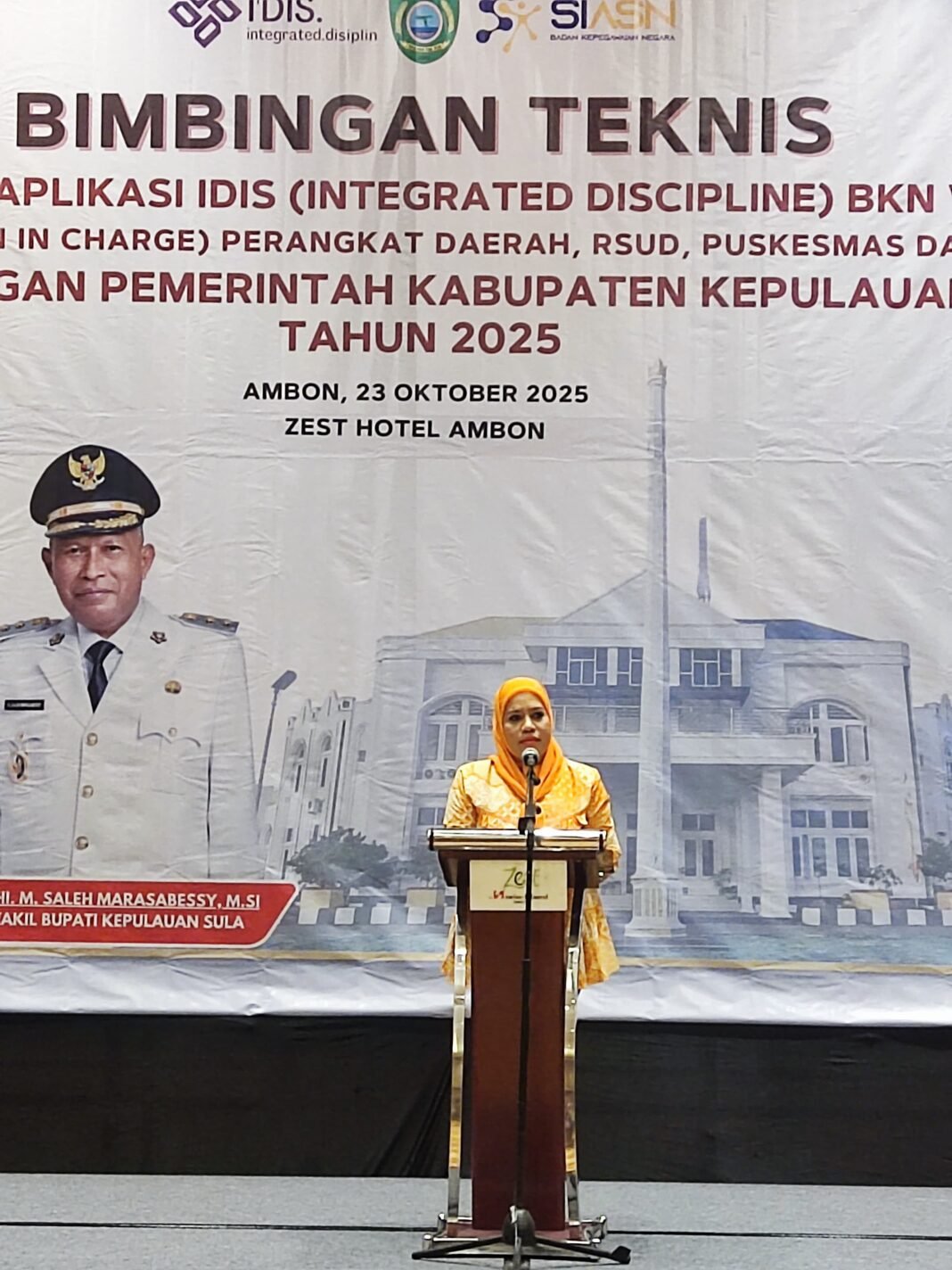 Malut, Investigasi.News-, Bupati Kepulauan Sula Fifian Adeningsi Mus secara resmi menutup kegiatan Bimbingan Teknis (Bimtek) Aplikasi IDIS (Integrated Discipline) 3.0 yang diselenggarakan oleh Badan Kepegawaian dan Pengembangan Sumber Daya Manusia (BKPSDM) Pemda Kabupaten Kepulauan Sula dan BKN bertempat di Ambon.