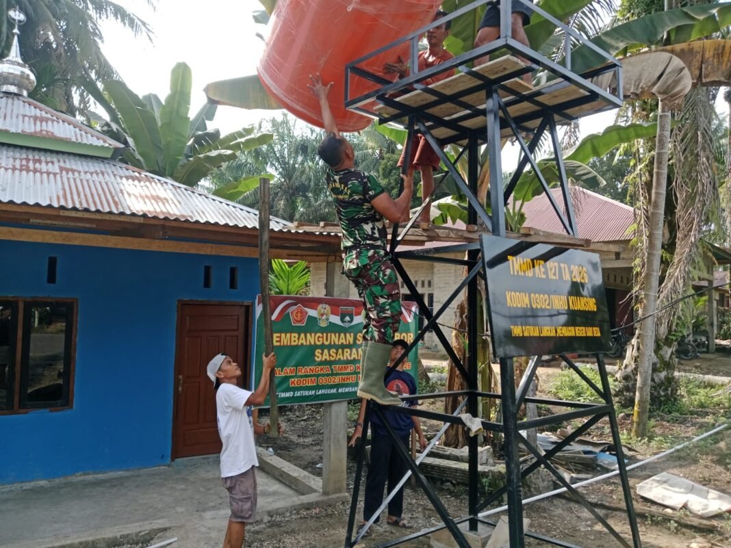 Kegiatan ini merupakan bagian dari program TMMD (Tugas Pembangunan Masyarakat) Ke-127 yang digagas oleh Kodim 0302/Indragiri Hulu (Inhu). Pemasangan tanki penampungan menjadi langkah krusial untuk memastikan air yang diambil dari sumur bor dapat disimpan dan digunakan secara optimal oleh masyarakat sekitar mushala.