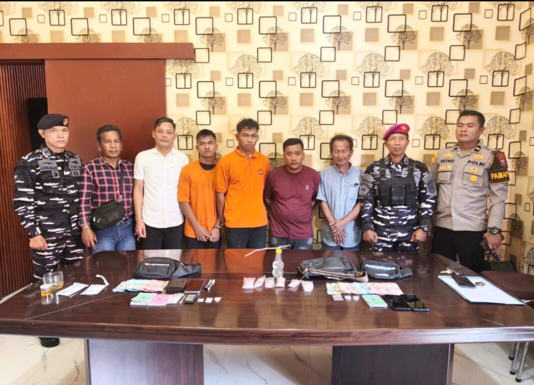 Dalam kegiatan tersebut, dua terduga pelaku pengedar narkotika masing-masing berinisial T.S. (20) dan M. (22) berhasil diamankan bersama dua orang warga yang berada di tempat kejadian.
