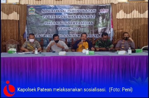 KENDAL, investigasi.news- Kapolsek Patean melaksanakan sosialisasi peningkatan partisipasi masyarakat dalam korservasi Sumber Daya Air di Daerah Aliran Sungai (DAS) Blukar dalam rangka mengoptimalkan kegiatan operasi dan pemeliharaan sarana dan prasarana konservasi tahun 2022 bertempat di Kantor Balai Pertemuan Kecamatan Patean. Sabtu (26/03/2022).
