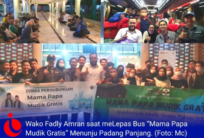 Depok, Investigasi.news – Wali Kota, H. Fadly Amran BBA Datuak Paduko Malano melepas bus “Mama Papa (Mahasiswa-Mahasiswi Padang Panjang) Mudik Gratis”, Senin (25/4) malam, di Kampus Universitas Indonesia (UI), Depok. “Dengan semua fasilitas yang ditanggung Pemko ini, mudah-mudahan dapat sedikit membantu mahasiswa kita dan selamat dalam perjalanan ke kampung halaman,” sebut Wako Fadly. Program mudik gratis ini, jelasnya, sudah dimulai sejak tahun 2018 lalu. Namun sempat terhenti akibat pandemi Covid-19. “Alhamdulillah, tahun ini bisa kita lanjutkan lagi. Mudah-mudahan tetap berlanjut dimasa yang akan datang,” ungkapnya. Tidak lupa, Fadly memberi atensi terhadap semua pihak, khususnya Dinas Perhubungan (Dishub) yang telah bekerja keras menyukseskan program ini.