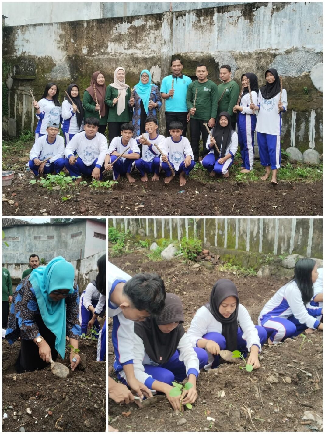 Sementara sebagai aksi nyata dalam mendukung program “SIKAP”, para guru dan siswa SMKN 1 Jember melaksanakan kegiatan penanaman beberapa jenis tanaman, yang diantaranya ketela, cabai, mentimun dan daun bawang.