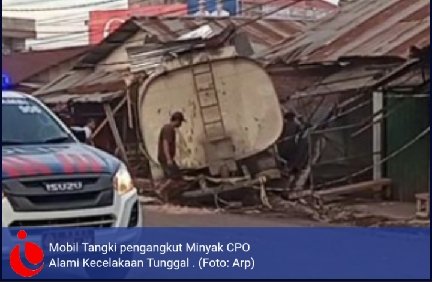 Mobil tangki cpo berisi muatan, tidak ada korban jiwa bang,sopir hanya luka”kata warga sekitar TKP