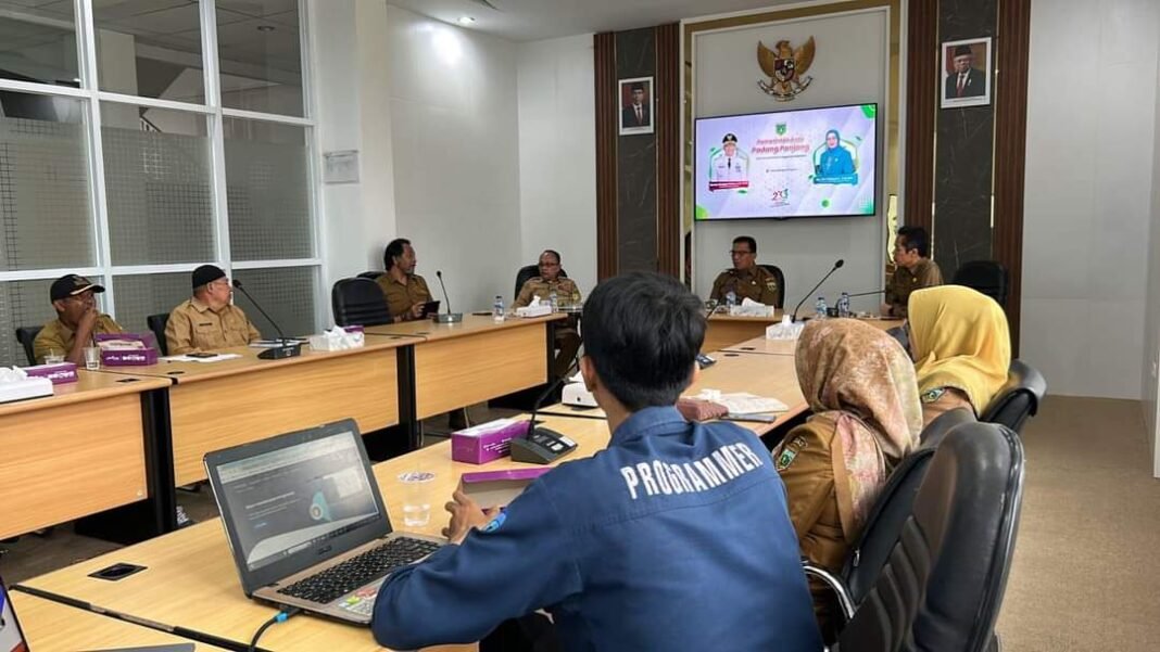 Rapat dipimpin Penjabat (Pj) Wali Kota, Sonny Budaya Putra, A.P, M. Si didampingi Asisten II Setdako, Ewasoska, S.H, Kadis Perkim LH, Alvi Sena, M.T bersama jajaran, Bidang Pendapatan BPKD, Bidang e-Government Dinas Kominfo, camat dan undangan lainnya.