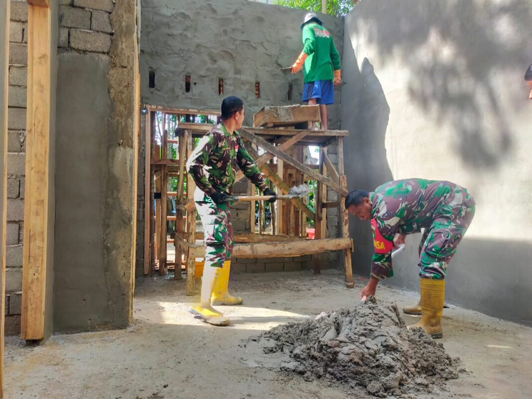 Pekerjaan plester dinding ini merupakan tahapan penting dalam pembangunan rumah, karena akan memberikan perlindungan dari cuaca, memperkuat struktur bangunan, dan memberikan tampilan yang lebih rapi dan indah. Satgas TMMD bersama masyarakat setempat terus bekerja keras menyelesaikan plester dinding dengan cermat dan teliti, memastikan agar hasilnya kuat, rapi, dan sesuai dengan standar konstruksi.