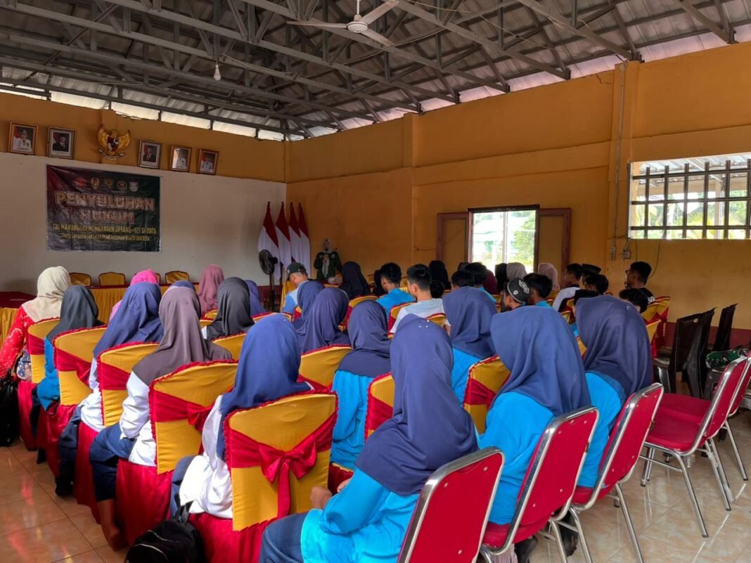 BANYUASIN, investigasi.news – Satuan Tugas (Satgas) TNI Manunggal Membangun Desa (TMMD) ke-127 Kodim 0430/Banyuasin (BA) melaksanakan penyuluhan hukum kepada masyarakat Desa Wonosari, Kecamatan Pulau Rimau. Materi penyuluhan disampaikan oleh Pelda Tri Susilo, S.H., Bamin Kumrem 044/Gapo.