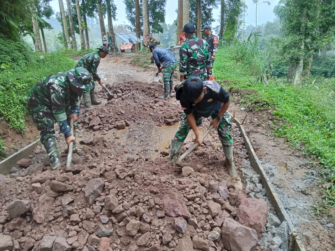 Cipelah, investigasi.news – Semangat gotong royong terus berkobar di Desa Cipelah, Kecamatan Rancabali, Kabupaten Bandung, dalam pelaksanaan program TNI Manunggal Membangun Desa (TMMD) Reguler Ke-127 Kodim 0624/Kab. Bandung. Pada Jumat, 27 Februari 2026, anggota Satgas TMMD Reguler Ke-127 Kodim 0624/Kab. Bandung bersama masyarakat Desa Cipelah, dipimpin Danramil 2414/Ciwidey Kapten Inf Supriadi, melaksanakan kegiatan perataan beskos dan pemasangan bekisting di titik 400, sebagai persiapan untuk pengecoran jalan pada malam hari. Kegiatan ini dimulai pukul 08.00 WIB dan berlangsung hingga selesai.