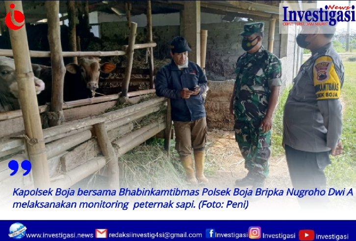 Kapolsek Boja dan Bhabinkamtibmas bersama babinsa serta mantri hewan. Melaksanakan sambang dan pengecakan hewan ternak kelompok tani Ngudi makmur