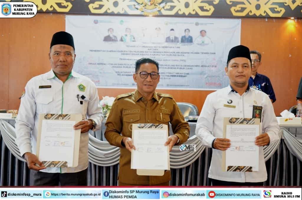 Penandatanganan Nota Kesapakatan dan Perjanjian Kerja Sama ini dihadiri oleh Bupati Mura, Heriyus, Kepala Pengadilan Agama Muara Teweh, Mulyadi, Kepala kantor Kementrian Agama Mura, Marzuki Rahman, Ketua MPH Jemaat GKE Hosana Puruk Cahu, Pdt. Gudmar Untung, Pastor Paroki Santo Klemens Puruk Cahu, Romo Antonius Tomo, Asisten III Setda Mura, sejumlah Kepala Perangkat Daerah lingkup Mura serta tamu undangan lainnya.