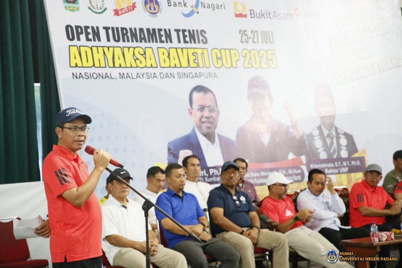 Padang, investigasi.news– Open Tournament Baveti Adhyaksa Bank Nagari Cup 2025 resmi dibuka di Lapangan Tenis Universitas Negeri Padang (UNP), 25-27 Juli 2025. Ajang bergengsi ini diikuti 126 peserta dari nasional, Malaysia, dan Singapura dengan total hadiah Rp56 juta, mengusung tema “Prestasi, Persahabatan, Semangat Juang”.