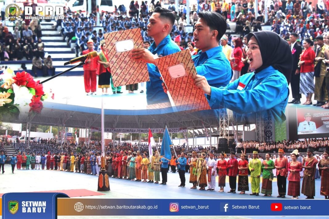 Muara Teweh, investigasi.news – Udara pagi yang cerah di Arena Terbuka Tiara Batara Muara Teweh, menjadi saksi semangat kebangsaan yang menggelora dalam Upacara Peringatan Hari Sumpah Pemuda ke-97 Tahun 2025, Selasa (28/10/2025).