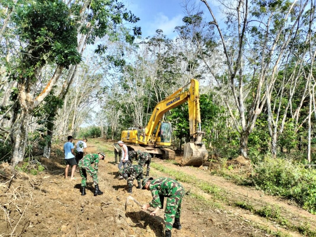 Dengan semangat gotong royong, personel Satgas TMMD bersama warga setempat bahu-membahu mempercepat proses pembukaan jalan. Berbagai peralatan, baik manual maupun alat berat, dikerahkan guna menunjang kelancaran pekerjaan di lapangan.