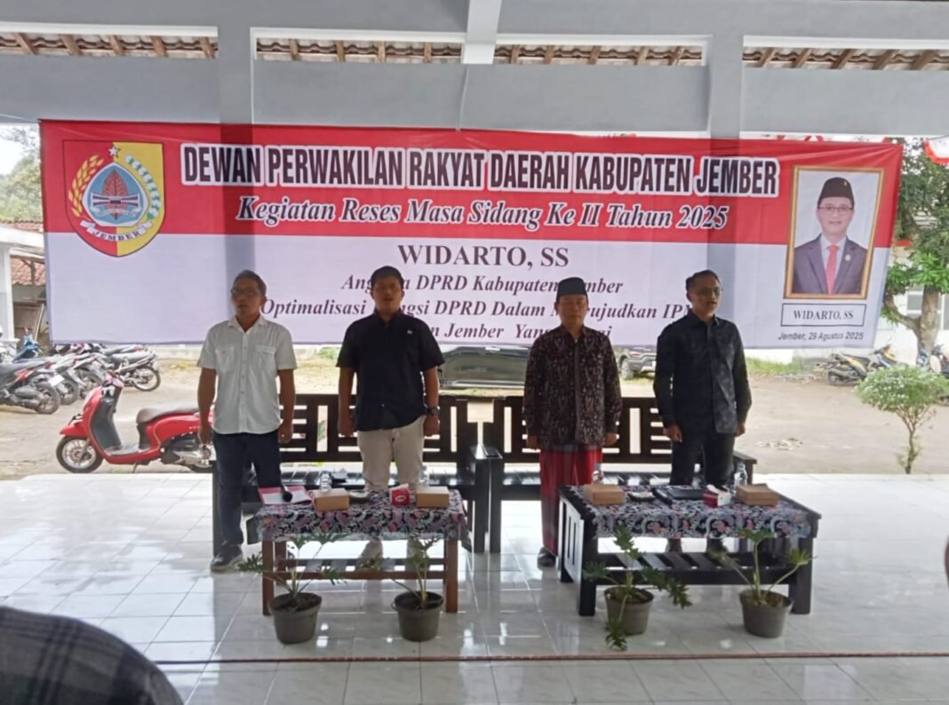 Jember, Investigasi.News- Dalam kegiatan reses masa sidang ke-2 tahun 2025, Wakil ketua DPRD Kabupaten Jember, Widarto S.S dari Fraksi PDI Perjuangan mendorong peningkatan Indeks Pembangunan Manusia (IPM) yang merupakan indikator kesejahteraan masyarakat dengan dimulai dari desa.