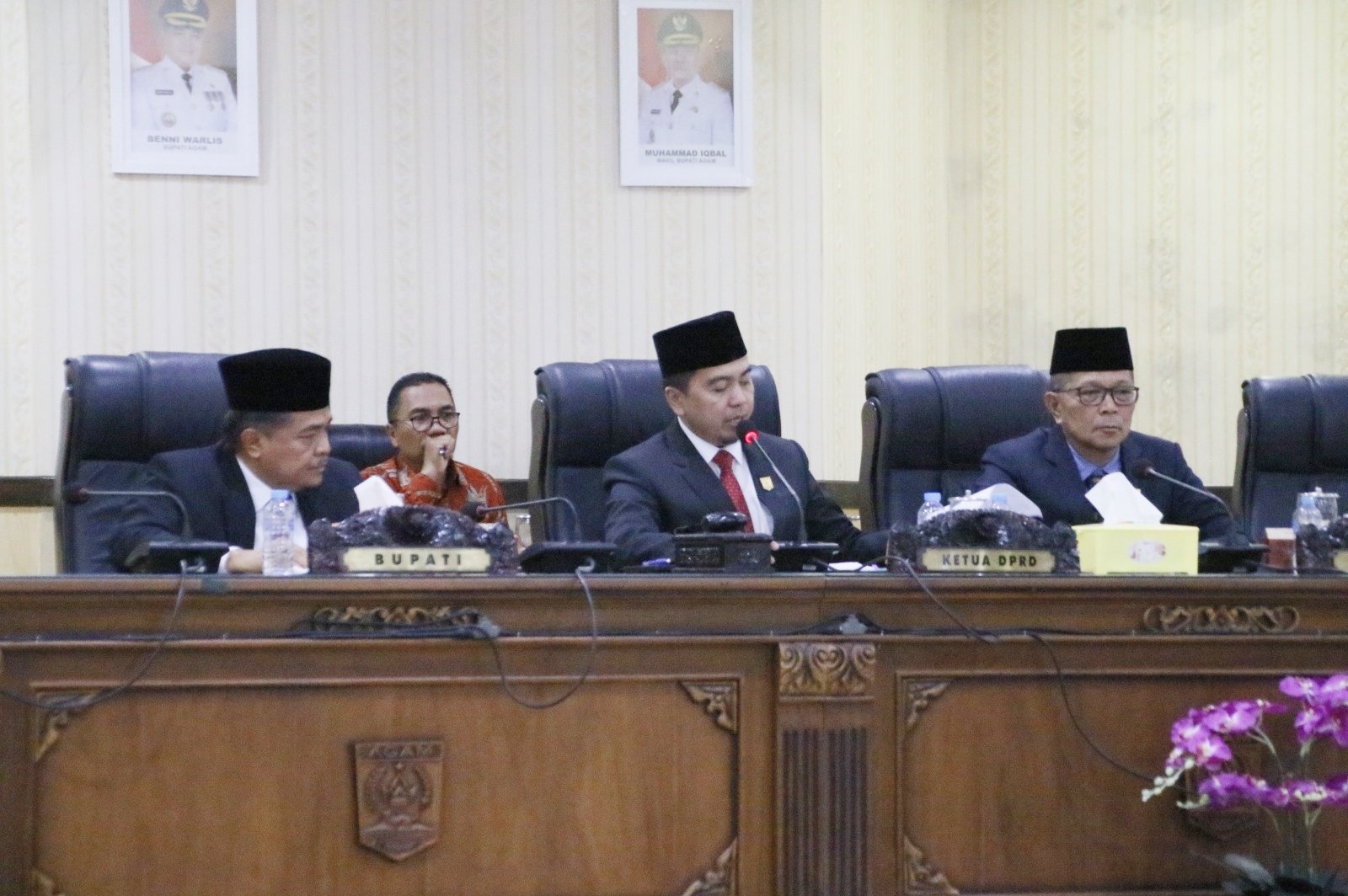 Kesepakatan tersebut diambil dalam Rapat Paripurna DPRD Kabupaten Agam, yang digelar di Aula Utama Gedung DPRD, Minggu (30/11). Rapat dipimpin oleh Ketua DPRD H. Ilham, Lc., MA, didampingi Wakil Ketua Muhammad Risman, dan turut dihadiri Bupati Agam Benni Warlis, unsur Forkopimda, anggota DPRD, serta para kepala OPD.