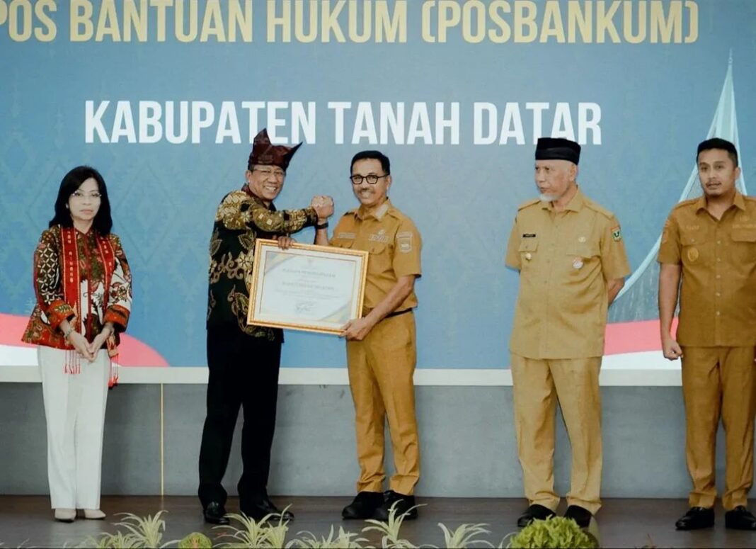 Penghargaan tersebut diberikan langsung dalam momentum peresmian Posbankum nagari/desa/kelurahan se-Sumatera Barat oleh Menteri Hukum RI, Supratman Andi Agtas, yang digelar di Auditorium Gubernur Sumatera Barat.